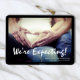 We're Expecting Photo Pregnancy Announcement Card with a pretty gray neutral pattern on the back side.