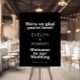 This we're so glad you're here black wedding welcome poster is perfect for a rustic wedding. The design features a beautiful font in a black background to embellish your event.