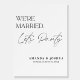 Welcome your guests with our We're Married Let's Party Wedding Welcome Sign. This beautiful design features clean text and a simple script font, creating a modern and sophisticated look that is perfect for any wedding. You can fully customize it using Zazzle’s design tool, adding your own text and personalizing it to fit your wedding theme. Ideal for couples seeking chic and minimalist wedding decor.