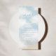 Elegant vibrant blue calligraphy and dreamy watercolor clouds "We Are On Cloud Nine" themed menu card.