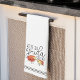 This funny cheese pun kitchen towel for couples features the play on words phrase "we're so gouda together" with a kawaii style smiling wheel and wedge of gouda cheese.