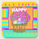 Vibrant Colors: The colorful basket and eggs pop against the dynamic background, making for a lively visual experience.