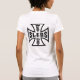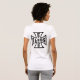 My overall review is that the T-shirt is nice, it fits true to size however the font is significantly smaller than advertised and you can't read it. The printing is unreadable and there is a strain to read it. It does not look like the advertised product. Maybe the shirt color is darker or a larger more visible font should have been used. Photos with and without flash and font is barely legible.