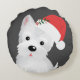 West Highland Dog Santa Hat Holly Berries Round Pillow