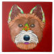 Unique West Highland White Terrier dog face with bold, colorful abstract patterns on a red background. Popular with dog lovers and pet lovers and rescue dog lovers.