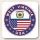 Badge of West Virginia with flag of West Virginia and flag of USA colors, rounded shape.