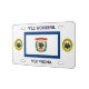 This custom license plate is decorated with the flag and seal of the state of West Virginia and can be customized.