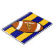Are you a West Virginia Football fan? Then show your WV pride with this WV Football pattern. Features a Brown and White Football with the letters W V in the middle of the football. The letters are in Yellow Gold, and are outlined in Blue. Behind the football are stripes in the same Blue and Gold. Show off that West Virginia pride.