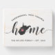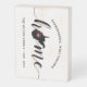 Show some home state pride with this cute wood box sign featuring "home" in black calligraphy script lettering with a silhouette map of the state of West Virginia standing in for the letter "O." A pink heart illustration inside the state map completes the design; you can change the position of the heart to your home city by opening the design tool and dragging the heart shape to your favorite spot. Personalize with your home city, family name and year established to create a perfect finishing touch for your entryway, or a memorable housewarming gift.