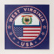Badge of West Virginia with flag of West Virginia and flag of USA colors, rounded shape.