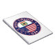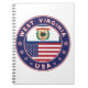 Badge of West Virginia with flag of West Virginia and flag of USA colors, rounded shape.