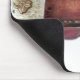 A mouse pad with a picture of a sterling silver western cowboy belt buckle and worn patina leather belt