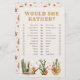 Western Boho Bridal Shower Game. Get the laughs started with this Would She Rather bridal shower game, designed with playful cowgirl energy and illustrated in watercolor details like boots, hats, and desert florals. The earthy neutrals, blush, orange, and luxe gold and black accents pop against a coordinating Western pattern on the back. It’s the perfect way to break the ice and celebrate the bride’s personality. Giddy up for some giggles—this one’s a guest favorite!