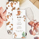 This design features modern neutral colors in a watercolor application. Design in cow print, glass of champagne, desert cactus, cowboy boots.