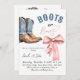 Elegant What will Baby Be Boots or Bows Themed Gender Reveal Invitation featured watercolor pink bow and blue cowboy boots. Matching products you can find in the collection.