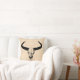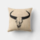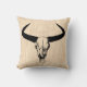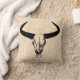 Western Bull Horns Vintage Cow Skull Beige Script Throw Pillow