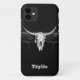 Western bull cow skull country cowboy custom name phone case. Black and white vintage style farmhouse. Rustic old wild west rodeo inspired art. Cool, trendy, modern farm animal design. Image copyright Marg Seregelyi Photography.