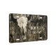Buffalo bull skull head with horns vintage inspired ranch professional business license plate. Western rustic grunge. Barn wood cowboy design. Antique inspired brown sepia bison fine art. Image copyright Marg Seregelyi Photography.