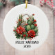 A vibrantly colored watercolor cactus and festive flower design with "Feliz Navidad" and the year underneath. This ceramic ornament is able to be customized to change the current text. Bring some Western vibes into your home this holiday season with this unique ornament!