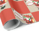 Western Christmas wrapping paper Cowboy Santa on red and green stripe and red block print Merry Christmas
