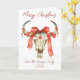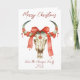Western Christmas Red Ribbon Cattle Skull Holiday Card