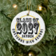 Lightweight, smooth, pure white ornament with nice sheen. Perfect size to be seen from across the room ... and to attract closer inspection! Price was great for ordering enough for the whole family! Clear, bold black design just as requested. Matches the order exactly. Just so nice!