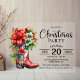 Celebrate Christmas and the festive season and invite your family, friends and loved ones to your Christmas party with this vibrant poinsettia floral acrylic western cowboy boot party invitation.