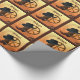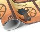 A graphic illustration of a western wagon wheel, cowboy hat and cowboy boots on custom gift wrap. The wrap has a text template for your personalization.