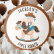 Welcome to the wild west cowboy birthday theme with our adorable Western Cowboy Rocking Horse design! This charming and rustic birthday set is perfect for celebrating the arrival of a little cowboy into the world. The design features elements like a cute baby on rocking horse wearing a cowboy hat and boots creates an atmosphere of rustic barn for your celebration.