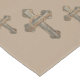 Western style crosses in barnwood print with cowboy ropes and conchos in the center and on ends on this table runner.
