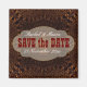 Western (Cowboy) design with Damask type pattern rich brown and hints of gold with customizable save the date text along with date and couples name , for upcoming wedding or engagement -