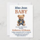 Western Denim Patchwork Bear Blue Jean Baby Shower Invitation