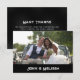 As a part of the Western Gothic wedding stationery suite, this Thank You card continues to impress with theme specific special touches while coordinating with the rest of the suite. Featuring a beautifully detailed background adorned with a cow skull and simulated, delicate lace accents, this design seamlessly blends rustic charm with dark, romantic elegance. This Thank You card captures the essence of Western grit and Gothic beauty. The front of the card features a wedding photo with names displayed underneath on a black color block. The back of the card features "Thanks" and your message to guests.