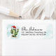 A watercolor cactus wearing a classic red and white Santa hat with a light blue watercolor stain background. Perfect for sticking on your holiday mailings.