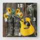 Western Horse Cowboy boots Guitar Sunflowers Square Wall Clock