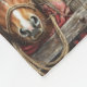 A brown horse is wearing a straw hat and a red scarf. He is looking through rustic wood fence rails. Great gift for Christmas, Birthday, Horse Lover.