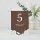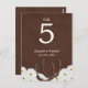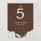 A country themed wedding table number featuring a pair of rustic horseshoes and white Gerbera daisies. Change the number for each table that you need and add one at a time to your cart.