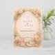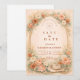 A romantic blush and peach floral design framed by a soft watercolor arch of roses, garden blooms, and airy pampas accents. Warm neutrals and muted sage greenery create an elegant, timeless aesthetic with a subtle western touch from the hat and rope detail. The composition feels refined yet natural — perfect for a boho western celebration, ranch wedding, or romantic garden ceremony. Fully customizable with your names and event details.