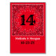 A dred bandana table number sign for your country or western or rustic wedding. Add a unique personalized western touch to your rustic table settings. This will complement your ranch, farm, barn, or a desert theme and get get all the cowboys or cowgirls to their tables. Authentic, detailed black and white design with hearts on a red background. The front side has the table number in white and the reverse side has a black table number. Table number, names, and event date can all be personalized.