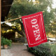 Open sign flag. Simple white on red flag using an old west font with a frame.