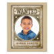 This Photo design features your kiddo on a wanted poster. The text gives off major western vibes and the back image is a silhouette of a cowboy wandering on his horse.