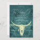 Western Rustic Dark Teal Sunflowers Bull Skull Invitation
