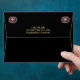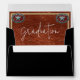 This stylish black and faux tooled brown leather 5"x7" envelope is designed to enclose our cowboy or cowgirl western ranch style customizable photo graduation Invitation card. Features a faux tooled brown leather background with concho details and a script Graduation overlay on the inside flap of the envelope. Back flap embellished with conchos and customizable return address in gold or remove to add your own handwritten information to the envelope. A beautiful western ranch style card to express your graduates love of western cowboy or cowgirl life. See our Collection for additional matching announcement, thank you cards and party supplies.