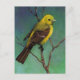 My oil pastel painting of a beautiful Western Tanager, perched on a branch, against a lovely blue-green background.