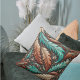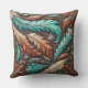 Western Tooled Leather Turquoise Feathers Throw Pillow