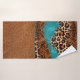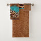 Western Turquoise Glitter Flourish Leather Leopard Bath Towel Set