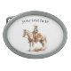 Ride in style with our Western Watercolor Blonde Cowgirl Custom Belt Buckle. This striking buckle features an elegant watercolor cowgirl on her horse, bringing a touch of refined western artistry to your outfit. You can personalize it with a fun phrase like Just Me and My Horse, a fitting motto like Ride On, Cowgirl, or the name of a ranch like The Dusty Spur Ranch. It's the perfect statement piece for any rodeo, barn dance, or everyday western look.