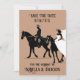 Announce the date of your wedding to family and friends with a bride and groom riding horses on this elegant western-themed card.