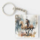 Western wild horse acrylic keychain. Beautiful watercolor brown and tan wild horses running in the wilderness. A Perfect gift idea for family and friends who love horses.