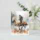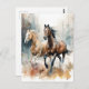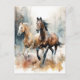 Western wild horse postcard. Beautiful watercolor brown and tan wild horses running in the wilderness.